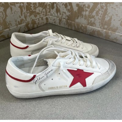 Super-Star sneakers in white leather with red star and red lace heel tab