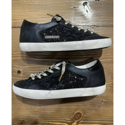 Super-Star in black glitter and leather with gold metal lace