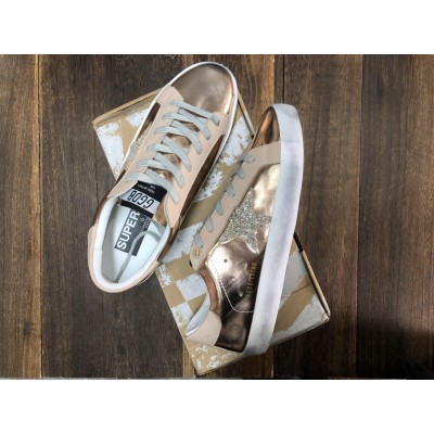 Super-Star LTD sneakers with gold glitter star and Golden metal laces