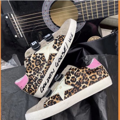 Women's Super-star Sneakers In Leopard-print with gold star and pink heel tab