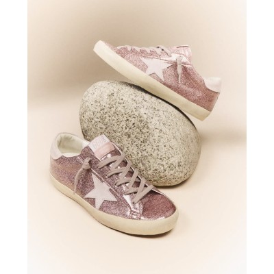 Super-Star sneakers in pink shiny leather with pink suede star