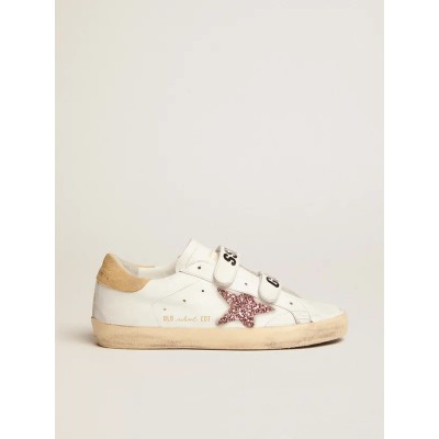 Old School sneakers with pink glitter star and sand-colored suede heel tab