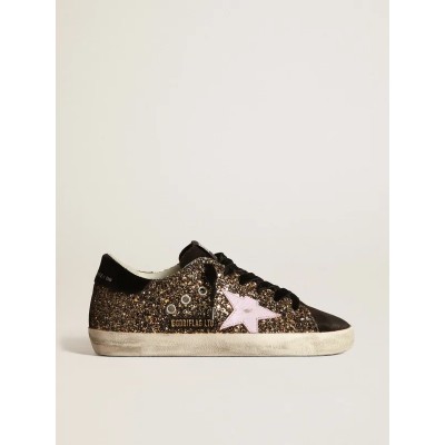 Women's Super-Star with a suede star and peach-pink glitter heel tab