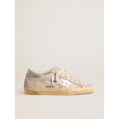 Women's Super-Star in platinum glitter with dove-gray suede star