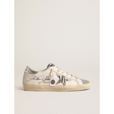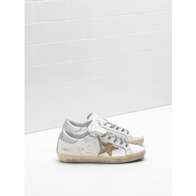 SUPERSTAR Sneakers in white leather uppper with gold glitter star and silver heel tab