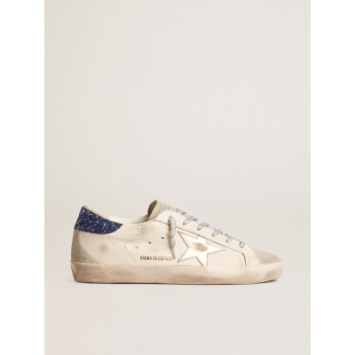 Women's Super-Star LTD in nappa leather with platinum star and blue glitter heel tab