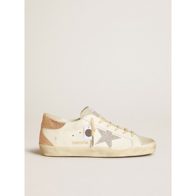 Women’s Super-Star in aged white nubuck with Swarovski crystals