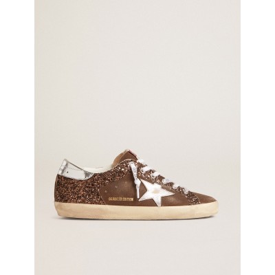 Women's Super-Star LTD in brown glitter and suede with leather star and heel tab