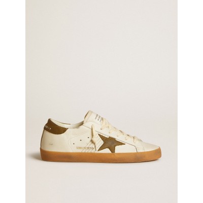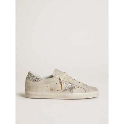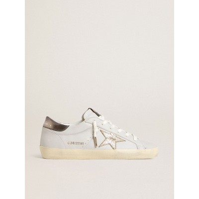 Women's Super-Star LTD in ivory nappa leather with platinum glitter star and heel tab
