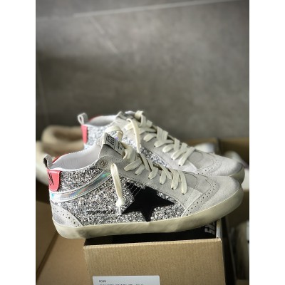 Mid-Star Sneaker in glitter upper with black leather star and red heel tab