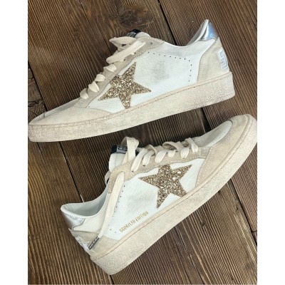 Ball Star LTD in white leather with gold glitter star and silver heel tab