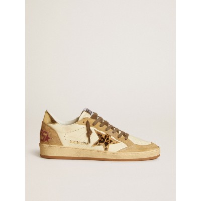 Ball Star Sneaker in leopard print with white leather star and hot pink heel tab
