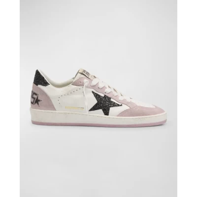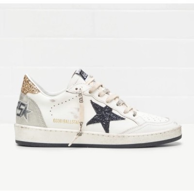 Ball Star LTD in white leather with black glitter star and gold glitter heel tab