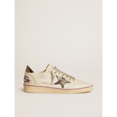 Women's Ball Star in white nappa and mesh with tobacco-colored nubuck star and beige heel tab