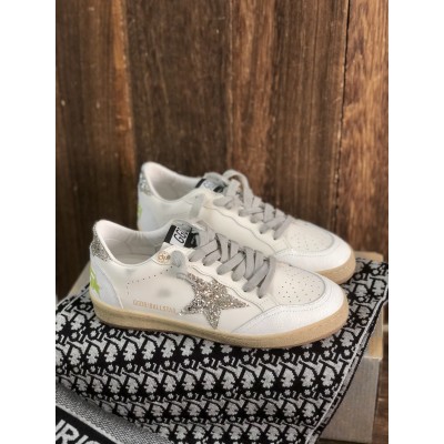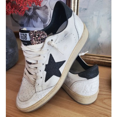 Ball Star Sneaker in white leather with black star and Mixed Color Glitter Tongue