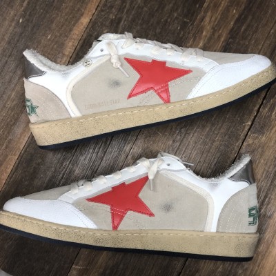 Ball Star Sneaker in ice suede with red star and silver heel tab