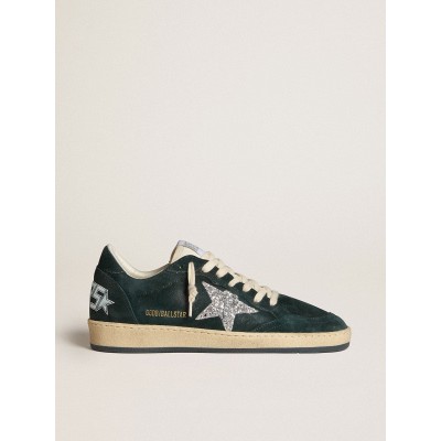 Ball Star Sneaker in Deep forest green suede with glitter star