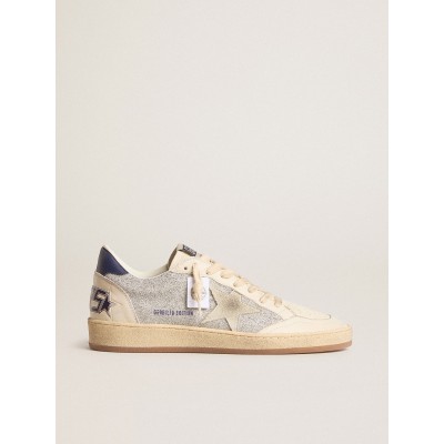 Women's Ball Star in platinum glitter with cream leather star and nubuck toe