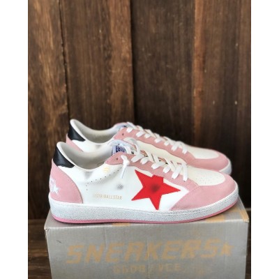 Ball Star Sneaker in white leather with Apricot colored pattern star
