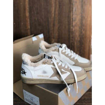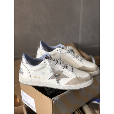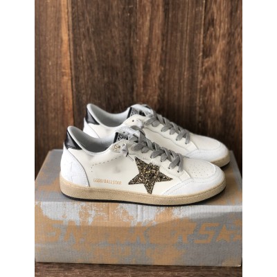 Ball Star in white leather with gold mix glitter star and black heel tab