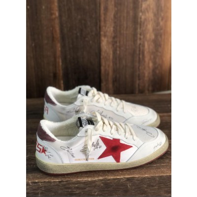 Women's Ball Star Sneaker in white leatjer with red star and black heel tab