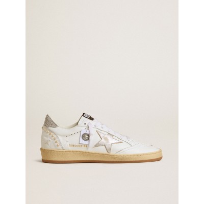 Women's white Ball Star with a silver star and Swarovski crystal heel tab with pearls