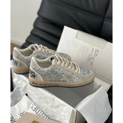 Women’s Ball Star in silver glitter with ice-gray suede inserts