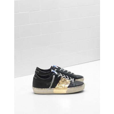 HI STAR Sneakers in black leather with gold star and black heel tab
