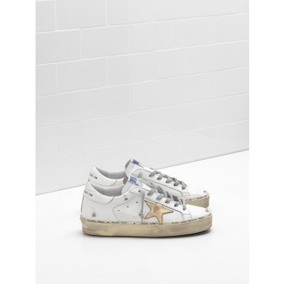 HI STAR Sneakers in white leather with gold star and white heel tab