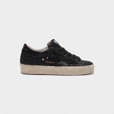Hi Star Woman in black suede with silver glitter star and heel tab