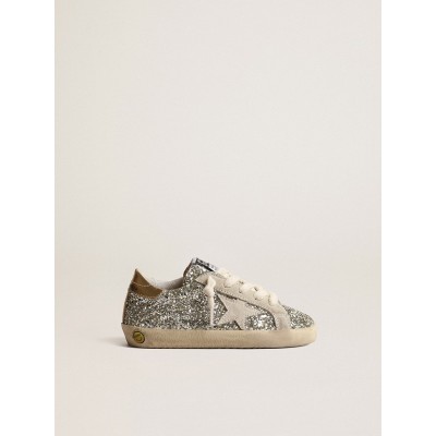 Super-Star Junior in glitter with a suede star and gold heel tab