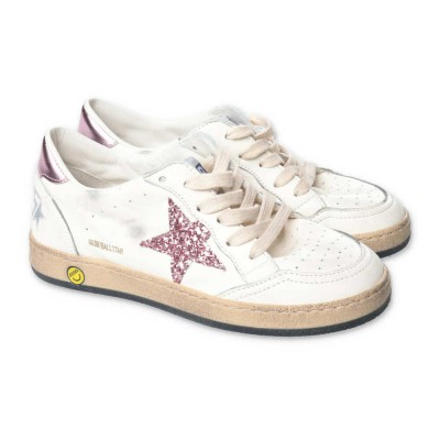 Young Ballstar in leather with pink glitter star and pink heel tab