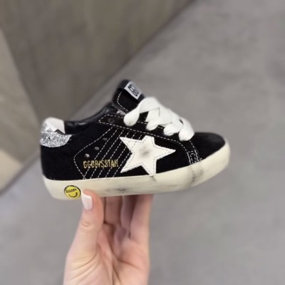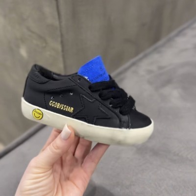 Young Super-Star Sneaker in black leather with blue suede tongue