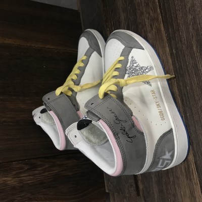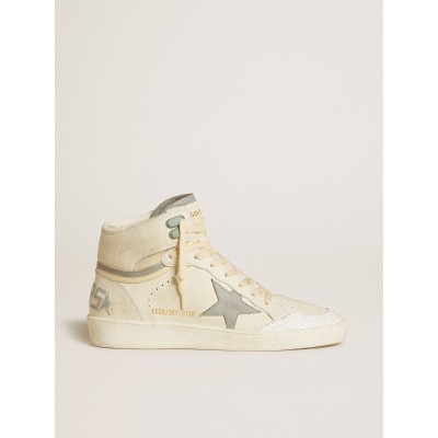 Women's Sky-Star in white and dove-gray nappa leather with silver glitter star