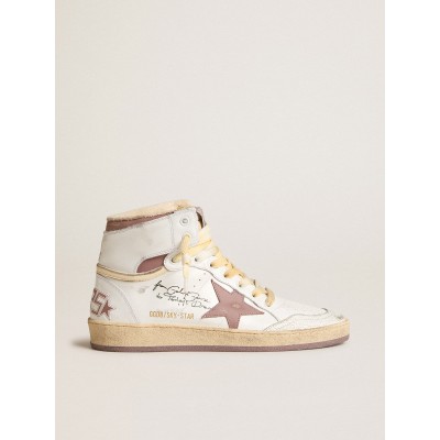 Women’s Sky-Star in white nappa leather with dove-gray suede star