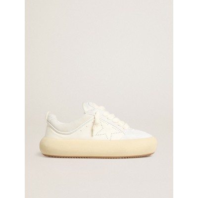 Women’s Space-Star shoes in beige shearling with white leather star and metallic leather heel tab