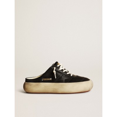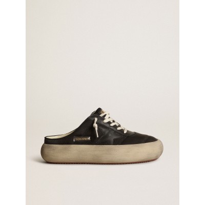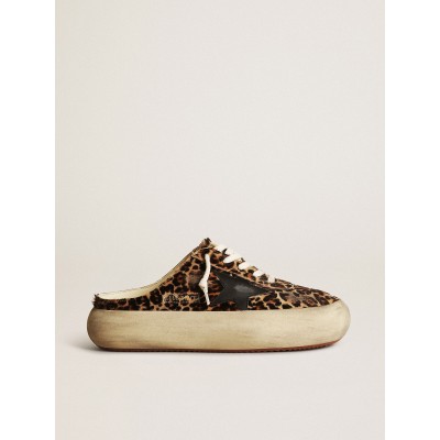 Women's Space-Star Sabot in leopard print pony skin with black star