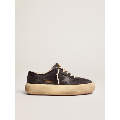 Women's Space-Star shoes in quilted black nylon with shearling lining