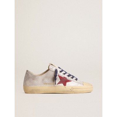 V-Star Woman LTD in silver laminated suede with star in red suede
