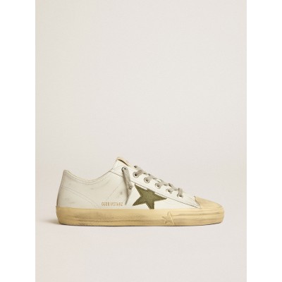 V-Star Man in white leather with star in green canvas