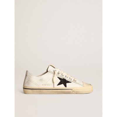 V-Star in white nappa leather with star in black glitter