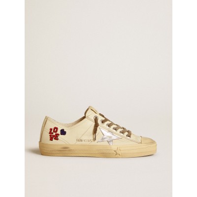 V-Star in ecru nappa with silver nappa star and beaded embroidery
