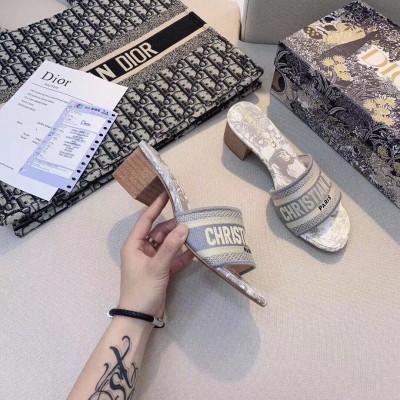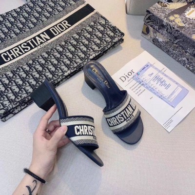 Dior Slippers D-lane Blue cowhide hollowed out Sandals