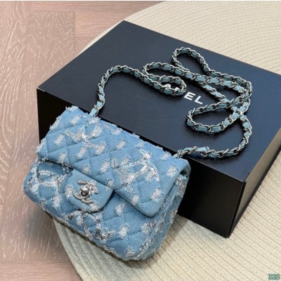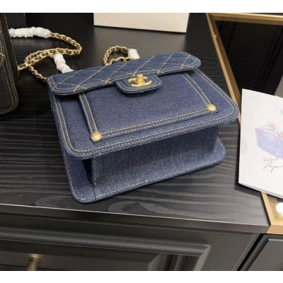 Chanel Quilted Denim Bag Aged Gold Hardware